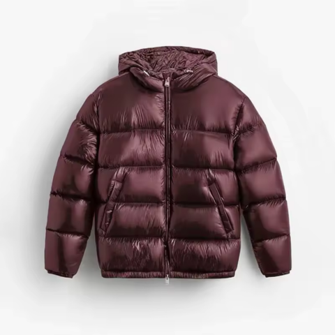 Alexis | Short Down Jacket for Men — Hood and Shiny Finish