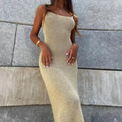 Denne lange kjole fremhæver silhuetten med en naturlig og raffineret fluiditet. Dens minimalistiske design passer til både en dagligdags påklædning og en elegant aften. De fine stropper og den firkantede udskæring giver den et diskret udseende.