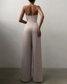 Αυτή η εφαρμοστή φόρμα αναδεικνύει τη σιλουέτα με τη ψηλή της μέση που κολακεύει. Οι λεπτές τιράντες προσθέτουν μια κομψή και θηλυκή νότα. Ιδανική για μια περιποιημένη εμφάνιση, από την καθημερινότητα μέχρι τις επίσημες περιστάσεις.