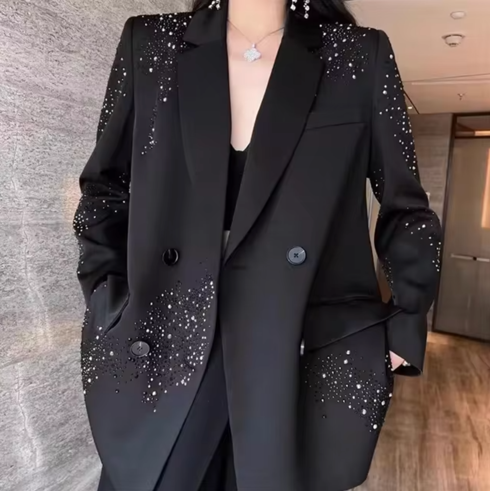 Κατερίνα | Μαύρο Σακάκι Εlegant — Λαμπερή Λεπτομέρεια & Εκλεπτυσμένο Στυλ