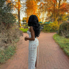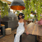 Αυτή η λευκή κεντημένη ρόμπα ενσωματώνει τη χάρη με το ντεκολτέ σε σχήμα καρδιάς και την εφαρμοστή γραμμή της. Ο κορσές της αγκαλιάζει κομψά τη σιλουέτα, ενώ οι λεπτές τιράντες προσθέτουν μια πινελιά λεπτότητας. Ιδανική για μεγάλες περιστάσεις, αντικατοπτρίζει μια διαχρονική και εκλεπτυσμένη κομψότητα.