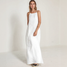 Este vestido largo sin mangas está diseñado para combinar comodidad y elegancia durante la temporada estival. Su corte fluido acompaña los movimientos con gracia, mientras que su diseño depurado permite una gran libertad de estilo. Perfecto para pasear en vacaciones, disfrutar de un día en la ciudad o asistir a un evento veraniego.