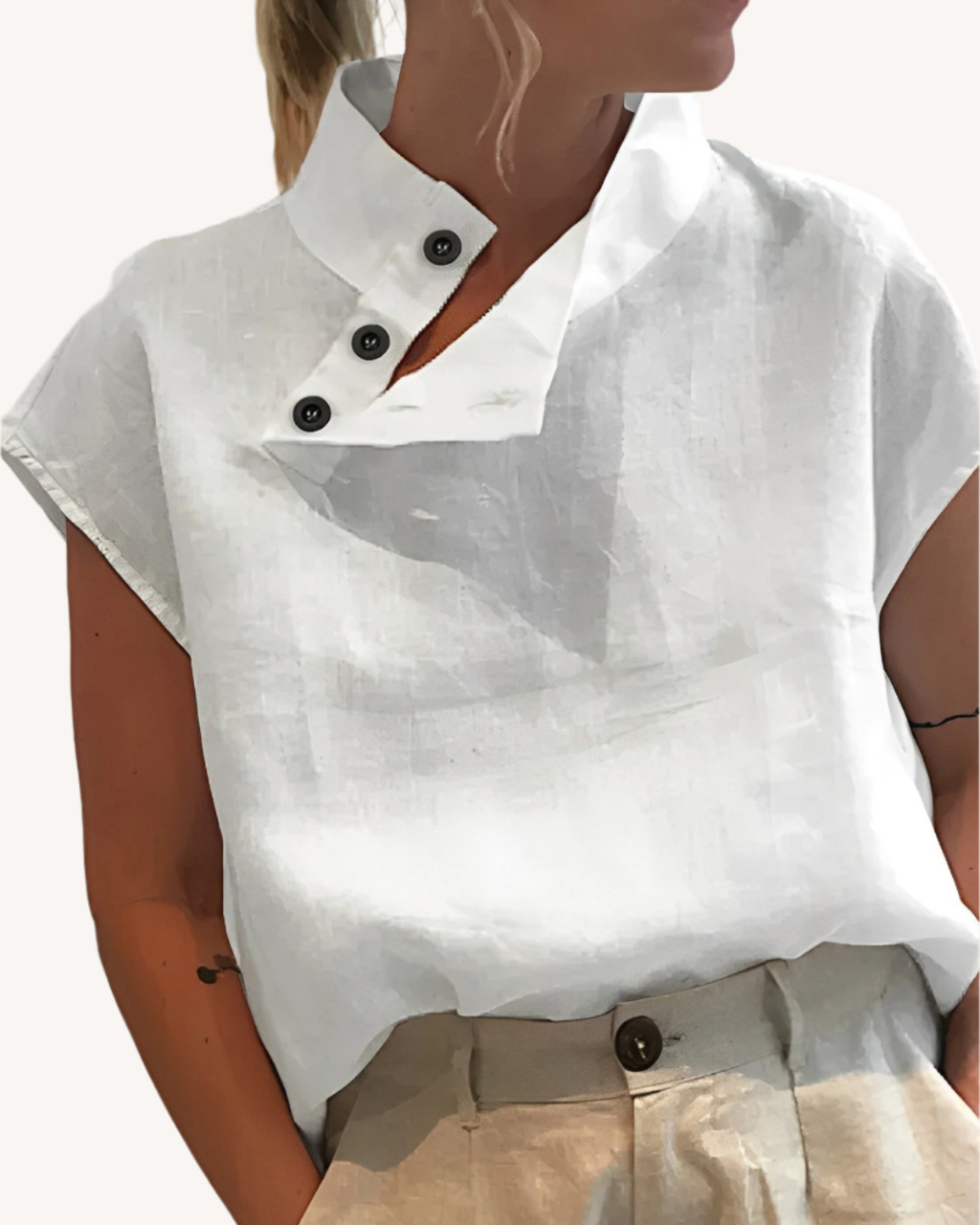 ¿POR QUÉ ELEGIR LA BLUSA DE MUJER DE MANGA CORTA CON CUELLO ALTO?