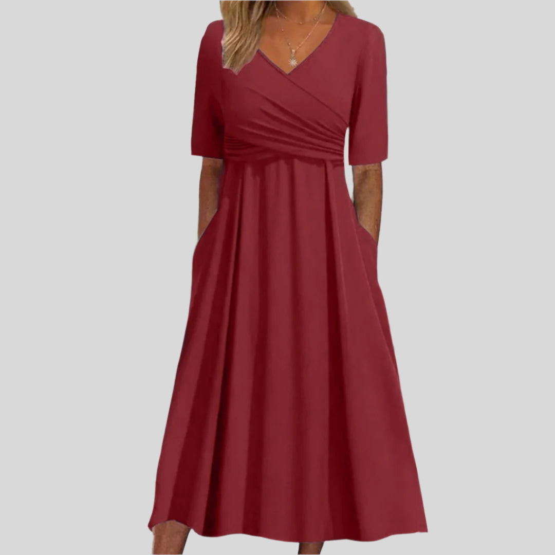 פאוסטין | שמלה ארוכה מצולבת עם שרוולים קצרים
