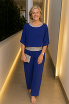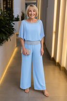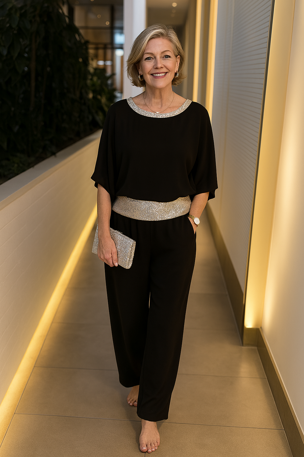 סט האלגנטי הזה לנשים משלב אלגנטיות ורבגוניות ביום-יום. הוא מורכב מכנסיים קלילים עם נפילה אלגנטית וחולצה עם פרטים מוקפדים. אידיאלי לאירועים פורמליים כמו גם ליציאות יותר לא פורמליות.