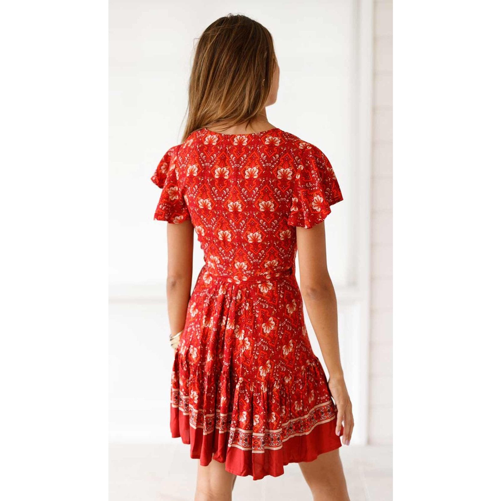 שִׁמְלָה אֲדֻמָּה בַּעֲצָב מַחְבֶּה לִבָּה מַשֵּׁי מַשָּׁקָה אֶת הַסִּילּוּט בְּזֶה שֶׁל דֶּקּוֹלְטֵי וְעַד כְּמוּת מוּשָּׁל. הַדִּפְּוּס הַפְּלוּרָלִי מֵבִיא נוֹשֵׂא בּוֹהֵמִי, בְּזַמָּן שֶׁהַכַּנָּפַיִם מַשִּׁים לְרִוּוּחַ וְנָשִׁיוּת. מוּשְׁלֶמֶת לְיוֹמוֹת שַׁמָּשִׁים אוֹ לְהִזְדַּמְּנוּת קַיִץ.