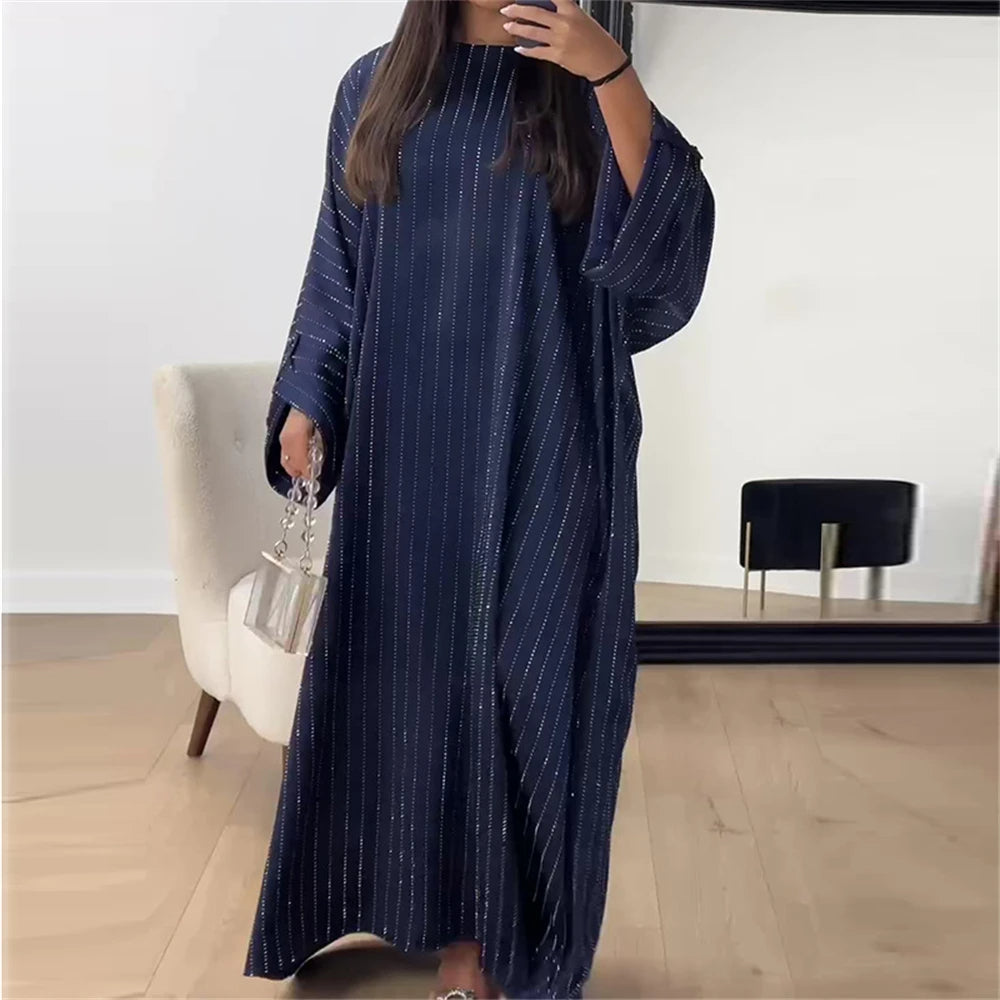 האביה לערב הזה משלב גזרה זורמת עם עיצוב פסים אלגנטי. הסילואטה הרחבה מבטיחה נוחות מוחלטת, בעוד הפרטים העדינים מייחדים את המראה שלכם בעדינות.