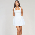 סנדרה | שמלת מיני קיץ – מחשוף הולטר ונפח זורם