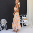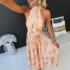קטיה | שמלת מקסי בוהמית – צווארון הולטר ודפוס פרחוני אלגנטי
