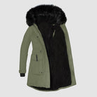 - 最大限の暖かさと洗練されたルックのためのファー裏地付きフード。