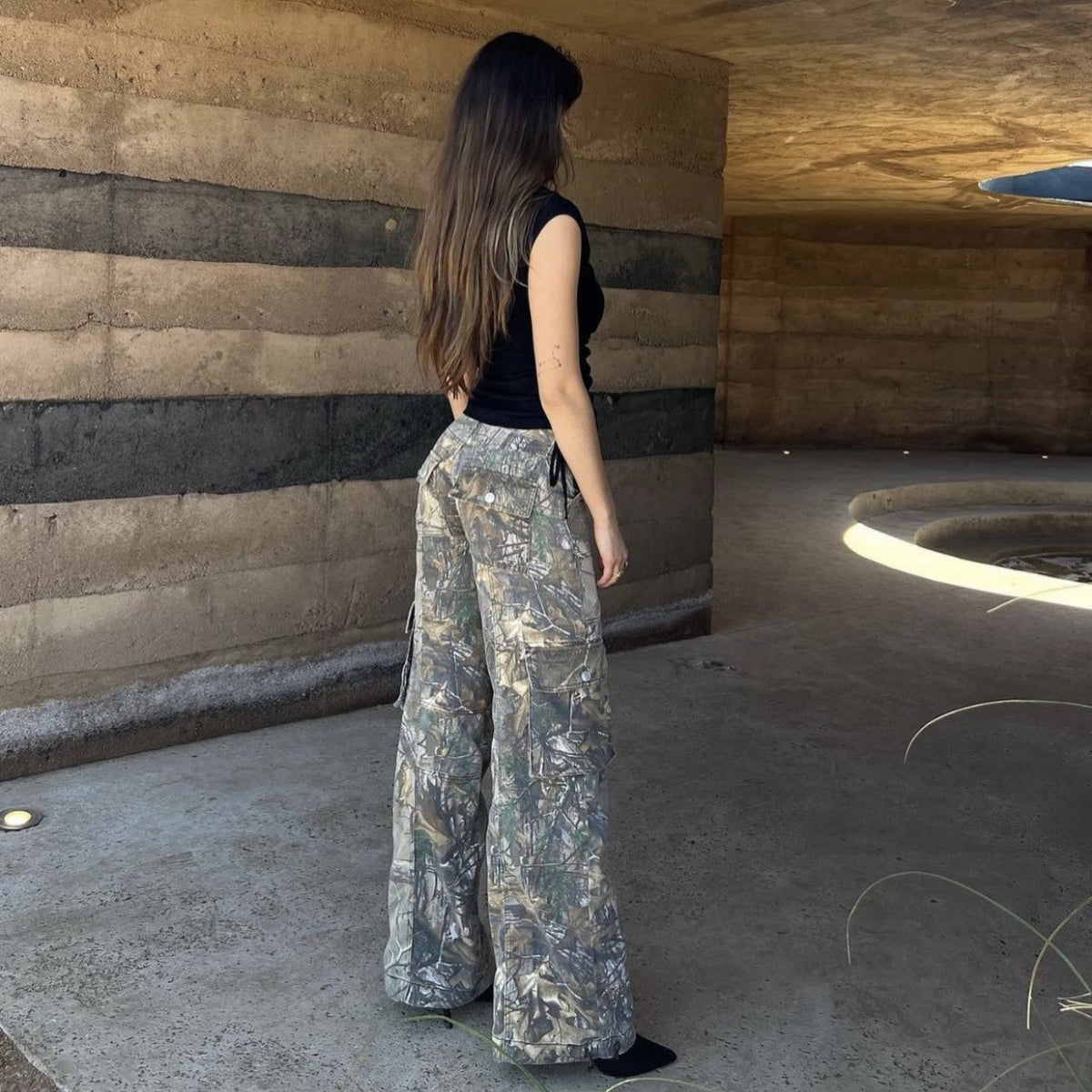 - 大胆なルックのためのトレンディな迷彩パターン。