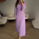 このロングスリーブドレスは、女性らしく魅力的なシルエットを提供します。さまざまな色で利用可能で、あらゆる場面に適応します。その時代を超えたデザインは、 effortless elegance を保証します。