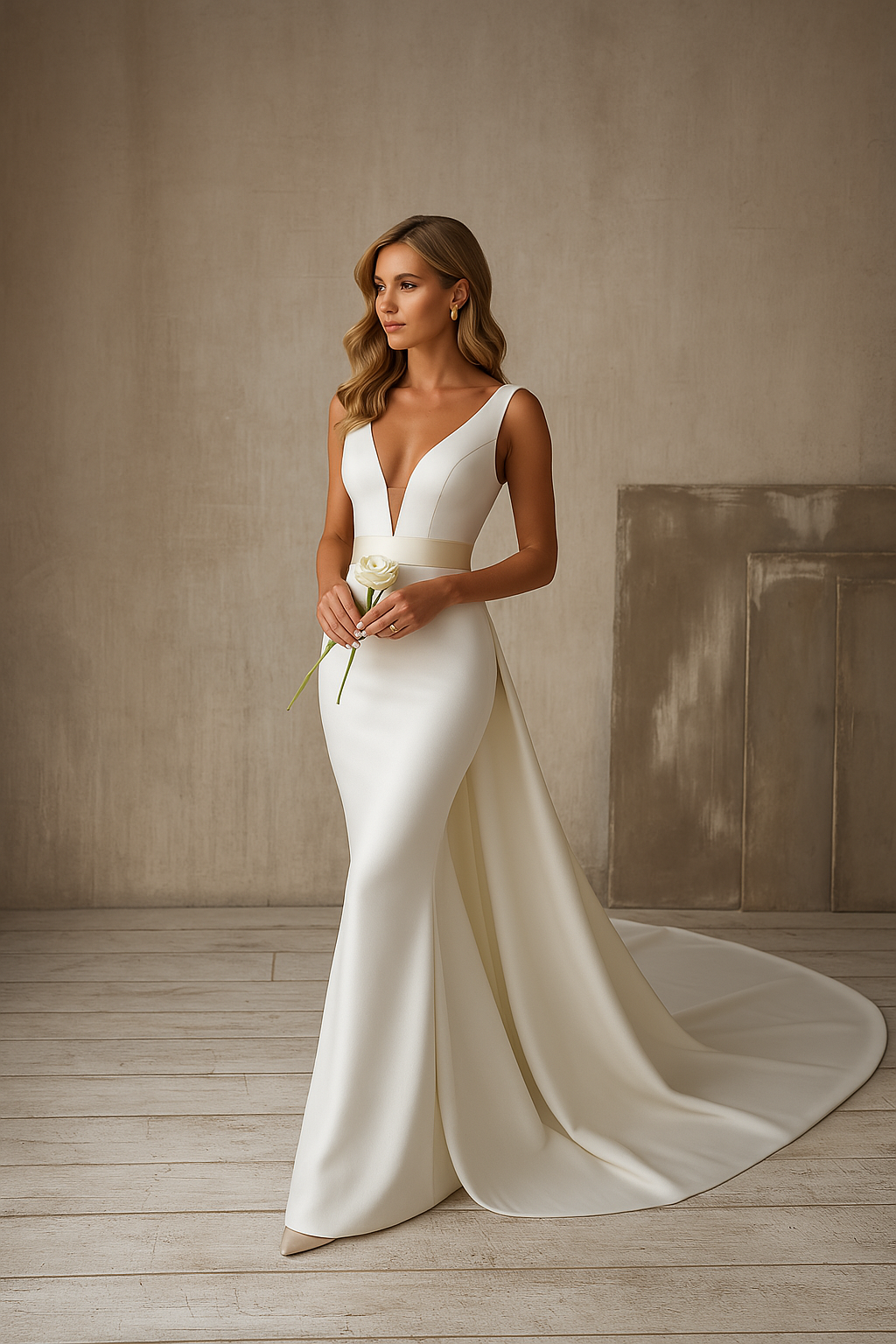 なぜノースリーブで深いVネックのロングウェディングドレスとトレインを選ぶべきなのか?