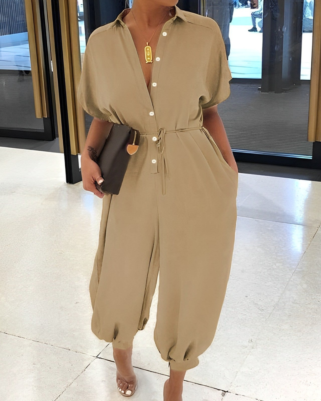 • Korte ermer og åpen krage for en luftig stil.