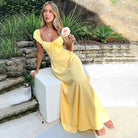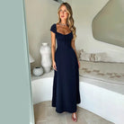 Denne lange kjolen for kvinner har en flatterende empirelinje, en firkantet utringning og sjarmerende puffermansjetter. Perfekt for uformelle utflukter, dagarrangementer eller kvelder, kombinerer den stil og komfort. Et must-have for din sommergarderobe.