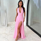 Sandra | Lang Splittkjole med Dyp Utringning