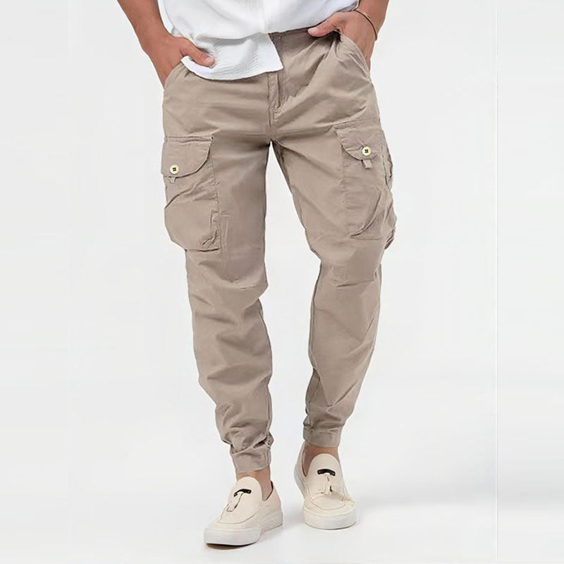 Dessa cargobyxor förenar elegans och praktiskhet. Tack vare sina många fickor kan du hålla dina nödvändigheter inom räckhåll. Den välgenomtänkta passformen garanterar komfort varje dag.